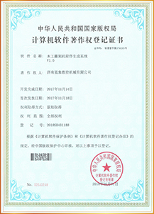 計算機軟件著作權登記證書(木工雕刻機程序生成系統(tǒng)V1.0)