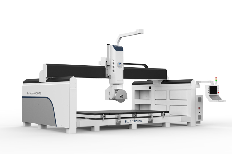 1、五軸橋式鋸片可傾斜45°,切割標(biāo)準(zhǔn)尺寸板材,實(shí)現(xiàn)四邊倒角、平面開(kāi)槽、挖盆孔等功能。
